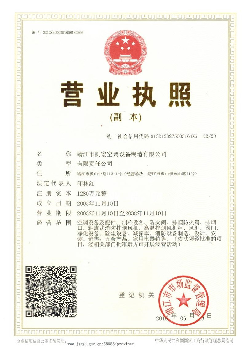 靖江市凱宏空調設備制造有限公司 地址:江蘇省靖江市孤山中路113-1號
