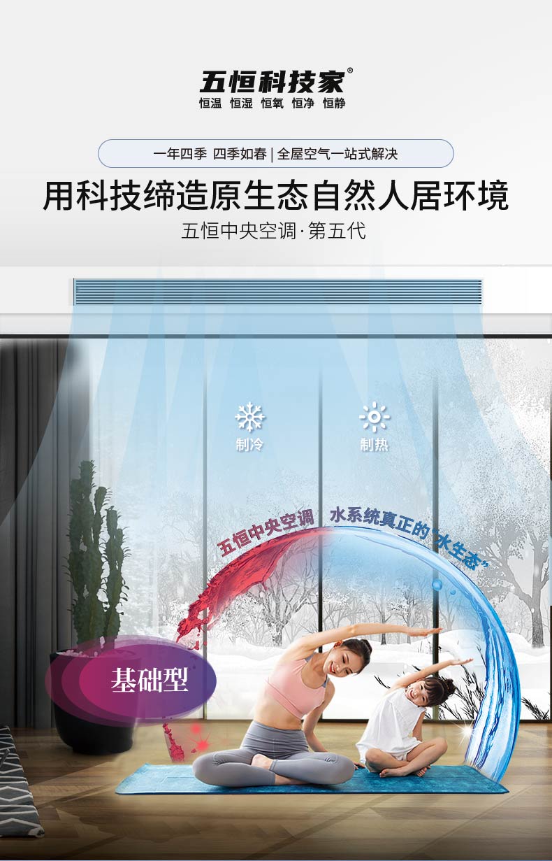 五恒科技家居環(huán)能系統(tǒng)是由冷熱源主機、地面調溫系統(tǒng)、除濕系統(tǒng)、新風凈化系統(tǒng)、智能控制系統(tǒng)五大核心組成。
