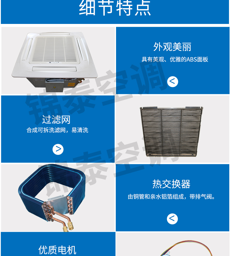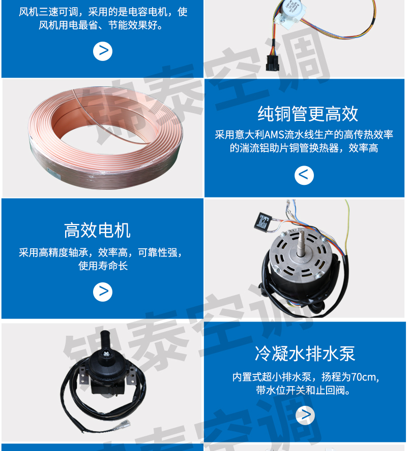 機組結構緊湊,管道、電線連接方便,安方便。 效率高: 先進的脹管工藝,保證了換熱器銅管和鋁箔的緊密接觸,傳熱性能好。 噪音低: 合理的風機與氣流結構設計,優質的吸音保溫材料,使機組噪音低于國家標準。