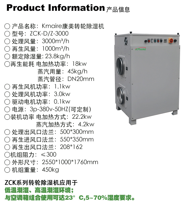 1、本表所列參數基于條件:處理進風、再生進風溫度35℃,相對濕度65%,再生溫度120±10℃;