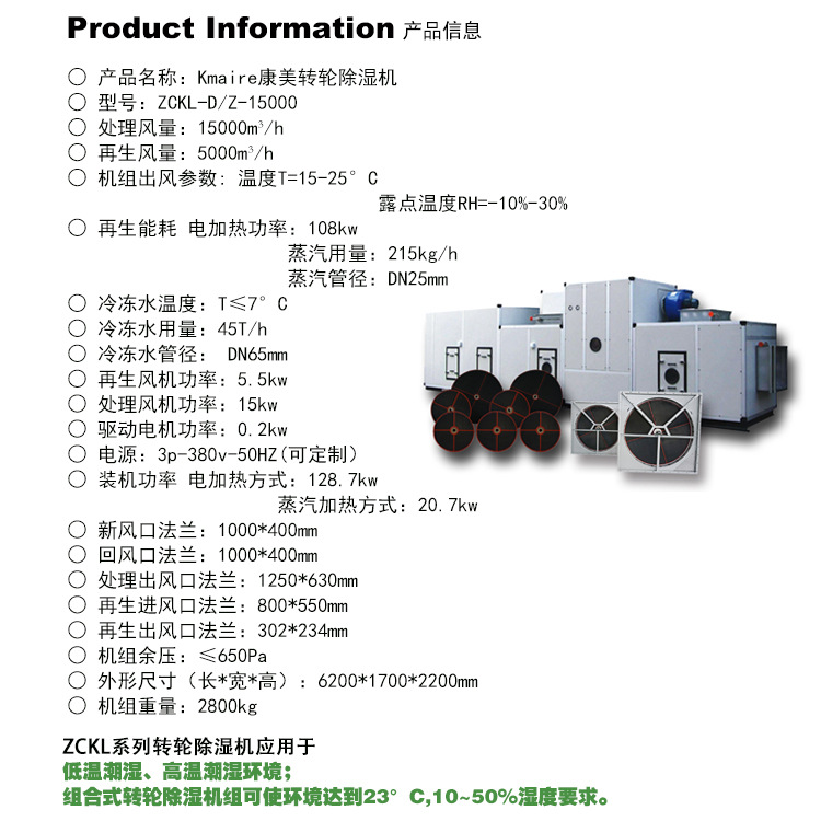 ZCKL系列轉(zhuǎn)輪除·濕空調(diào)機組使用時,用戶需提供T≤7°C的冷凍水;或由本公司隨機匹配提供相對冷量負荷的制冷機組。
