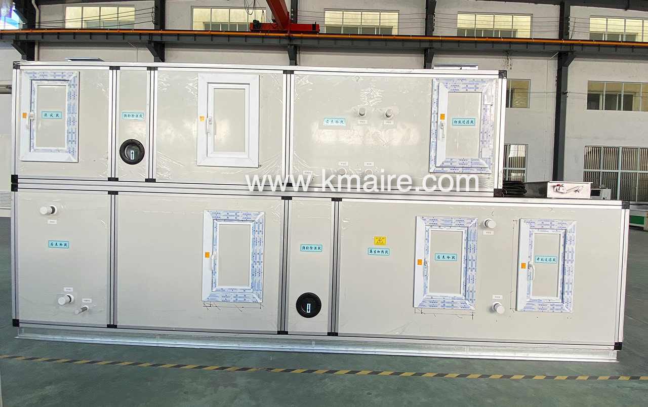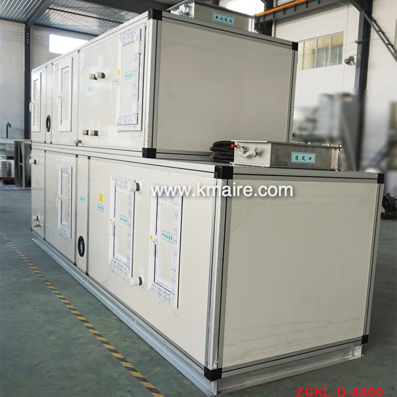 1、ZCKD低露點(diǎn)轉(zhuǎn)輪除濕機(jī)組主要由初效過(guò)濾段、新風(fēng)表冷段、回風(fēng)段、混合表冷段、超級(jí)硅膠或分子篩轉(zhuǎn)輪除濕段、冷吹再生區(qū)、后表冷段、中效過(guò)濾段、均流段、送風(fēng)段和PLC電氣控制系統(tǒng)組成;